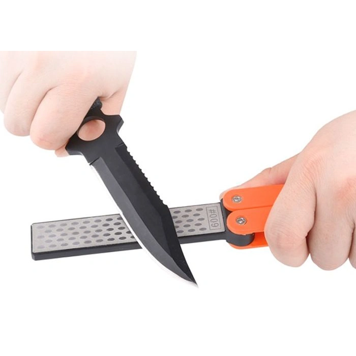 Deze slijpsteen heeft een diamant gegalvaniseerd oppervlak wat zorgt voor een snel en efficiënte manier van slijpen. Het slimme dubbelzijdige ontwerp biedt aan één zijde korrelgrootte van 360, voor ruw slijpen, en aan de andere zijde korrelgrootte van 600, voor het honen van uw mes.
